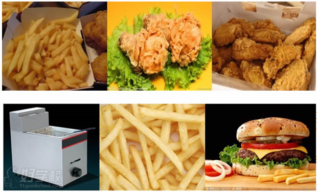 培训内容 炸鸡系列:香辣鸡腿,香辣鸡翅,麻辣鸡翅,无骨鸡柳,炸薯条等